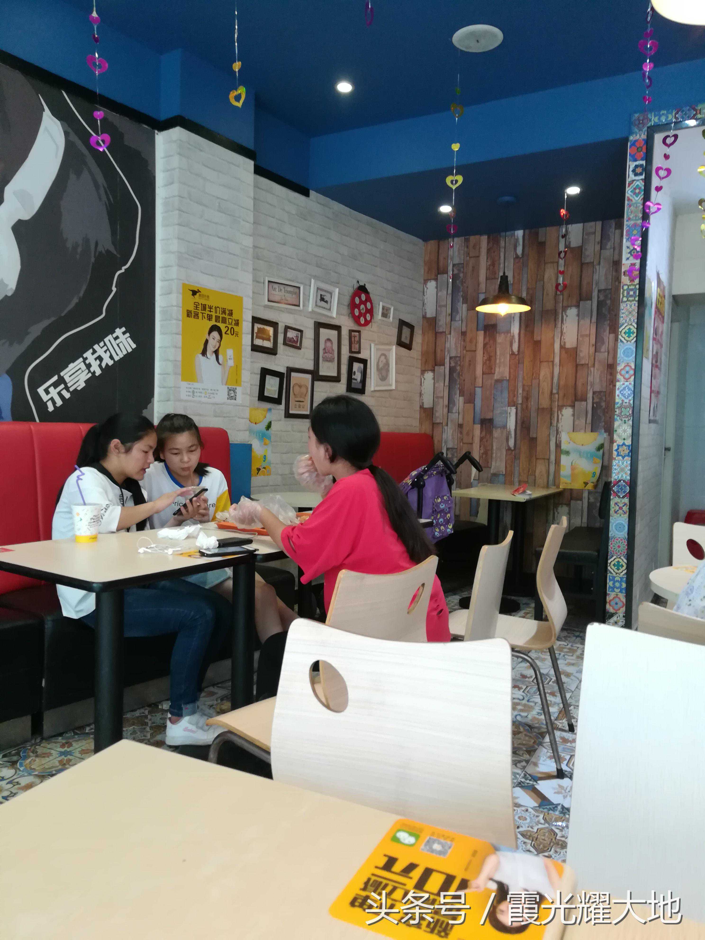 显眼的派乐汉堡招牌下面写着选任何一份套餐,加1元送甜筒套餐或大杯饮料。还有各种促销方法,每天有一份特价套餐,商家为了吸引顾客费尽了心机。