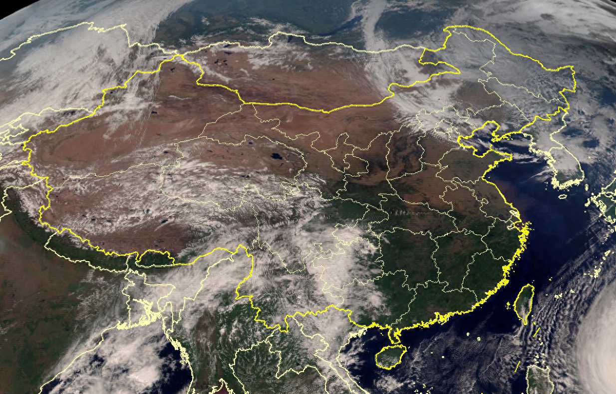 10月28日午后,阳光照耀着东亚大陆和西太平洋,这一切都被数万千米高空的风云4号卫星记录了下来。