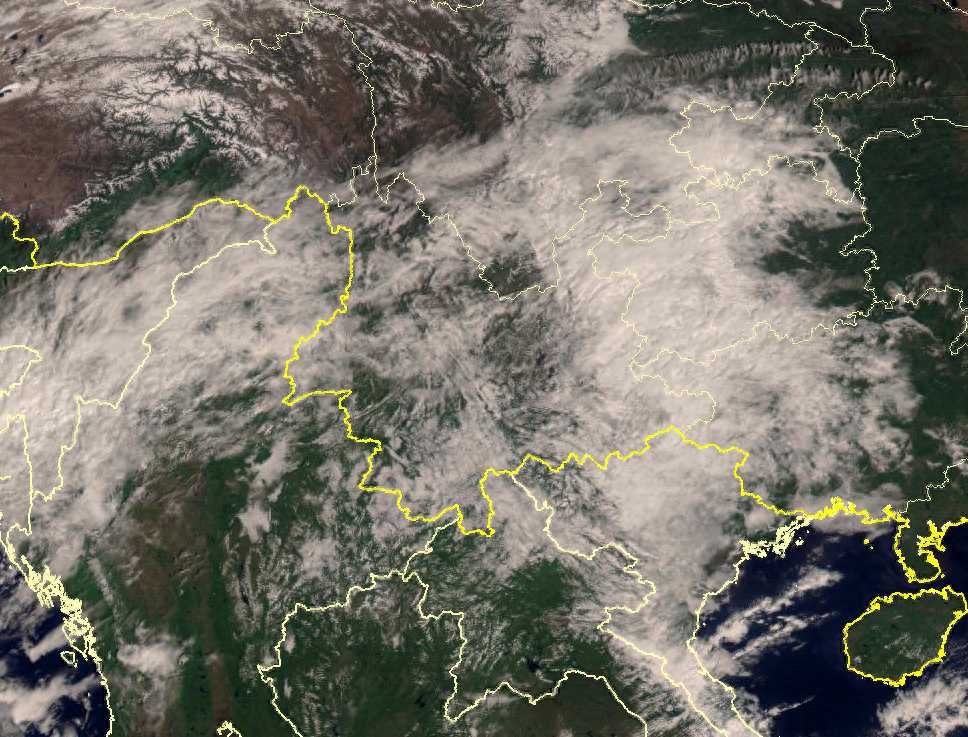 而在我国西北,虽然这里的天气还较为晴朗,但在国界线以外,已经能看到形成了一大片厚实的云系,这是正在酝酿中的一股新冷空气。