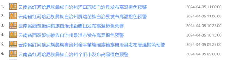 云南省森林草原火险气象等级预报