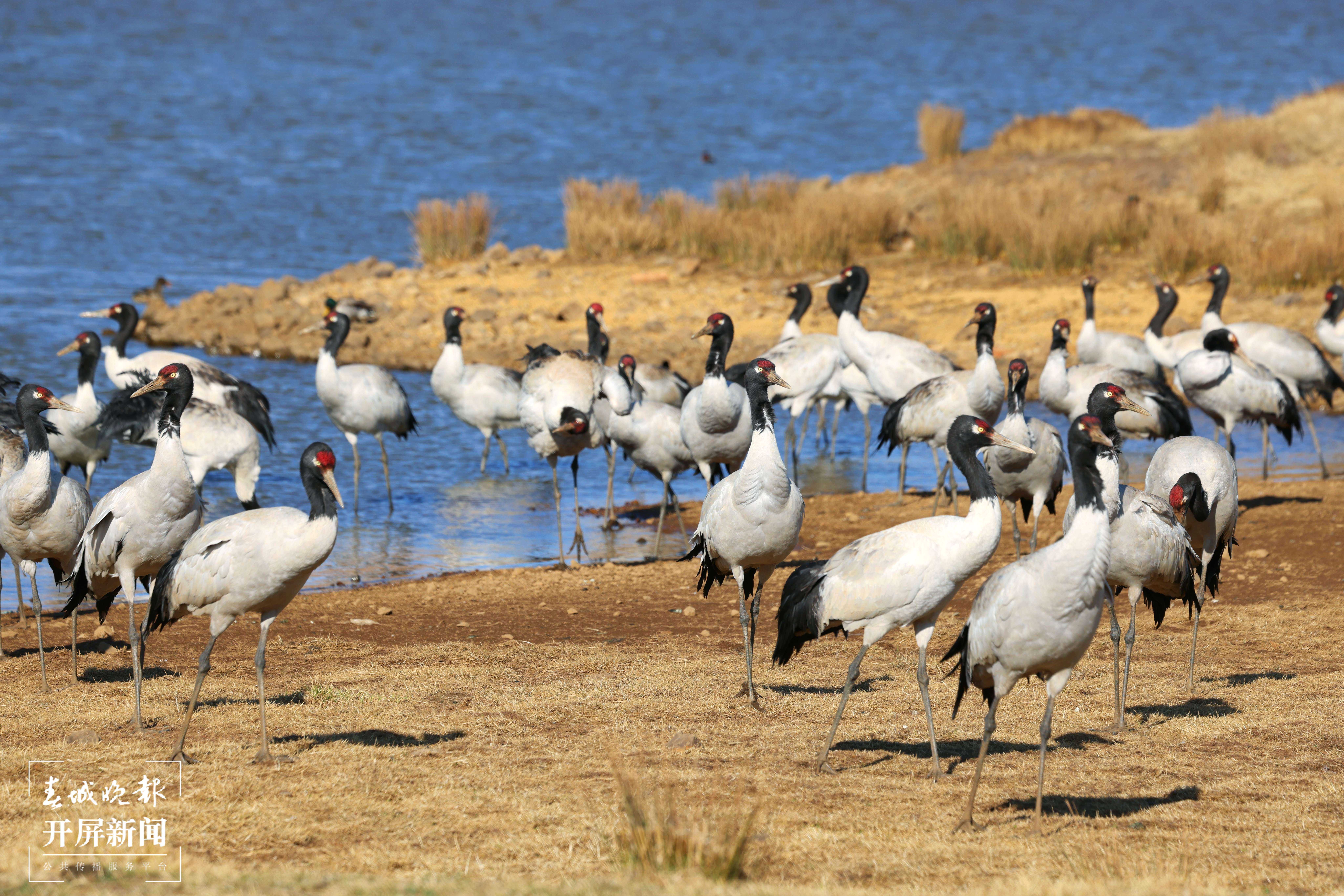 近日,云南大山包黑颈鹤国家级自然保护区工作人员监测发现,随着天气逐渐转暖,国家一级保护动物黑颈鹤已经开始大规模北迁,从越冬地飞往四川若尔盖繁殖地。