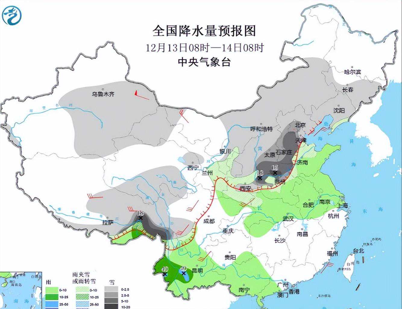 西北地区东部、江淮、江汉、江南、西南地区东部、华南北部等地将迎来小到中雨,降水较为充沛。这将有助于缓解一些地区的干旱情况,但也需要注意防范可能引发的洪涝灾害。12月13日的天气变化仍然较为明显,新疆北部、西藏北部和东南部、青海南部、西北地区东南部预计将有小到中雪或雨夹雪,而新疆北疆东部及伊犁河谷可能出现大到暴雪。这些地区要加强防范,确保交通、电力、供水等基础设施的正常运转。